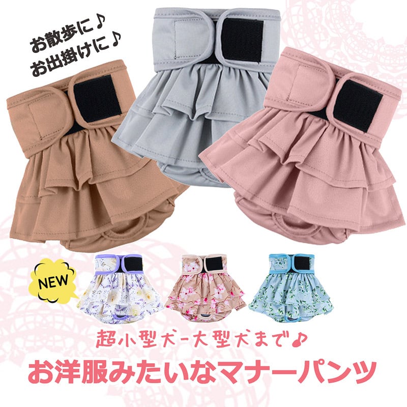 【送料無料】フリル マナーパンツ 女の子 犬 犬用 おむつカバー オムツカバー 女の子用 ペット服 犬服 猫 中型犬 小型犬 大型犬 サニタリーパンツ 生理パンツ オムツカバー お出かけ イベント 介護 介護用品 メス メス用 スカート スカート風 ふりふり フリフリ