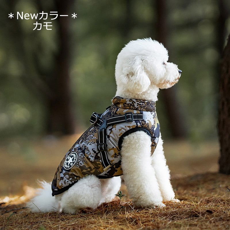 送料無料【ハーネス付き】犬 犬用 中綿ジャケット ダウン ダウンジャケット ハーネス付きダウン ハーネス付きコート 防寒 ベスト ジャケット コート ドッグウェア 撥水 ボア